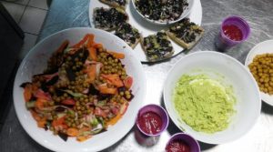 Tagliatelles de légumes, pois chiches grillés et pesto d’avocat